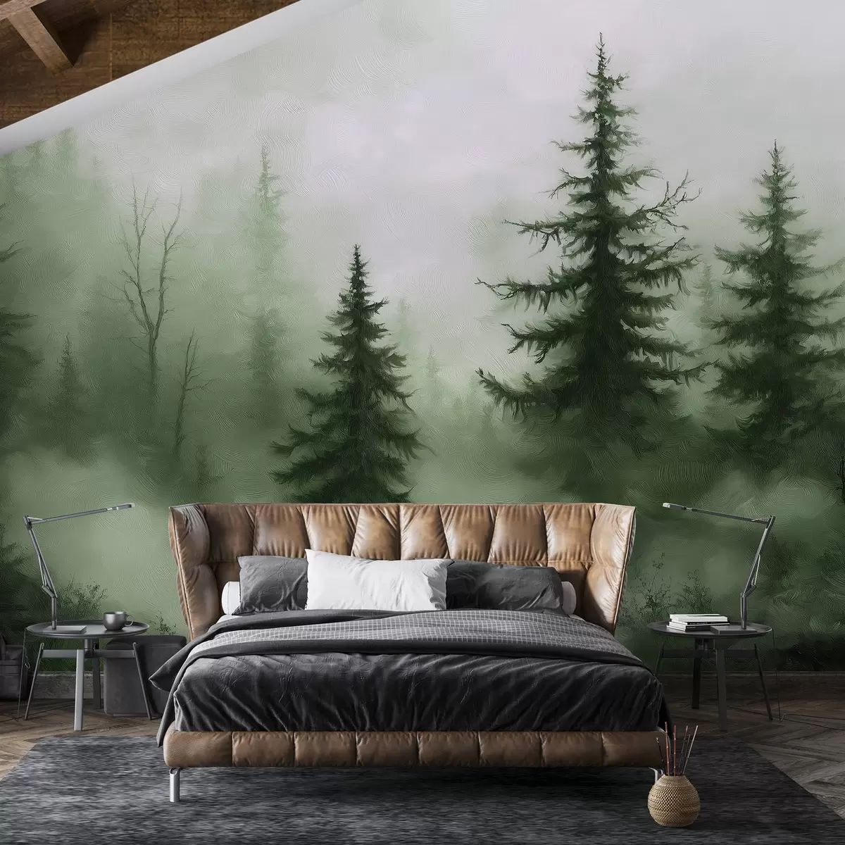 Carta da parati Foresta verde scuro, pittura a olio, pennellate, natura nr. w02153v1