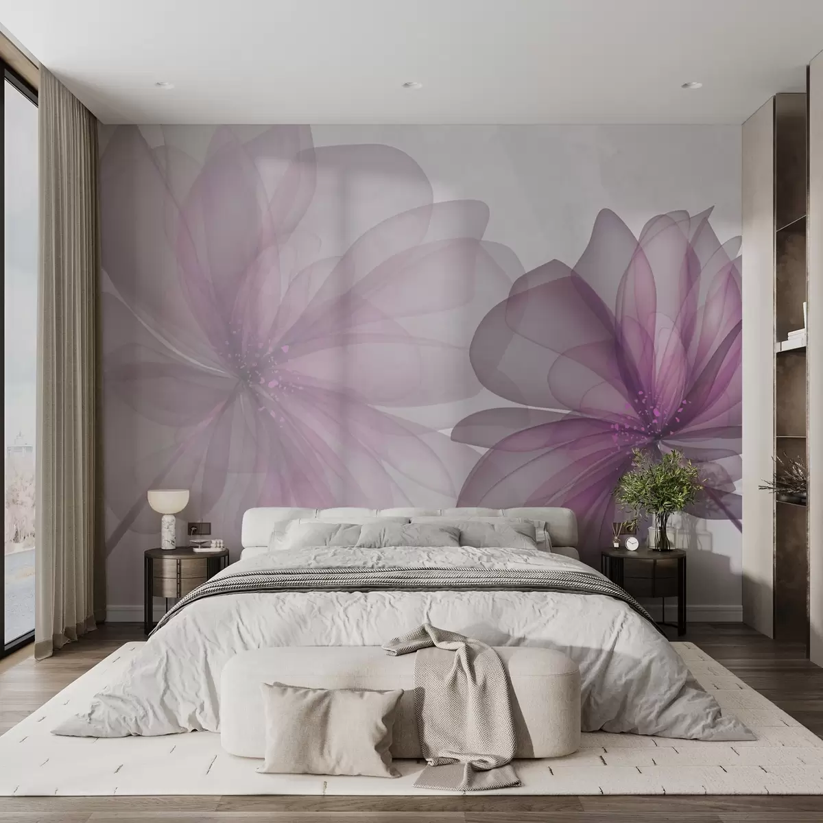 Carta da parati grandi fiori rosa traslucidi nr. w02205