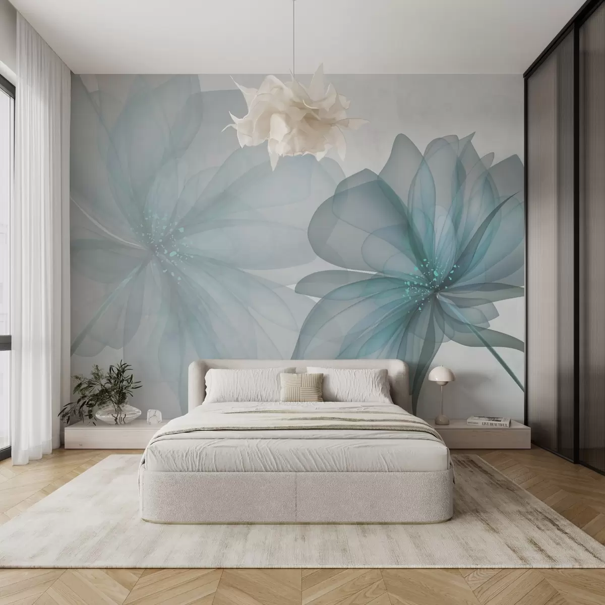 Carta da parati grandi fiori blu traslucidi nr. w02205v1