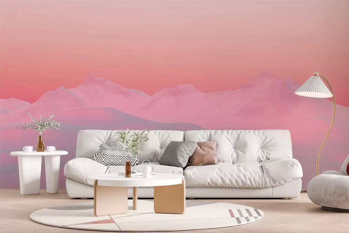 Carta da parati Morbido tramonto al lampone sullo sfondo di montagne e cielo nr. w02234