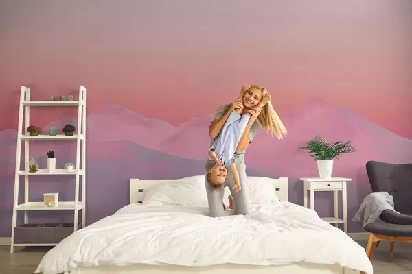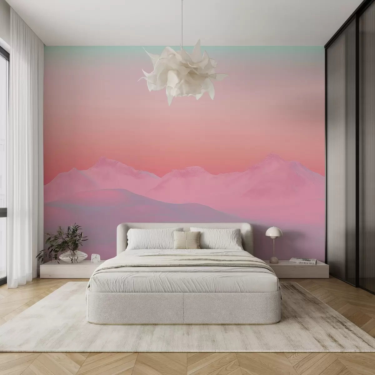 Carta da parati Morbido tramonto al lampone sullo sfondo di montagne e cielo nr. w02234