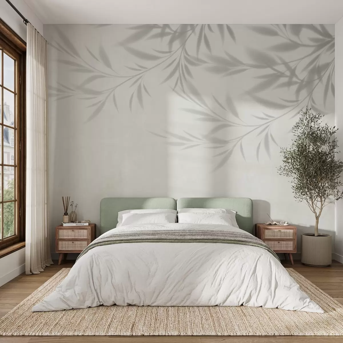 Carta da parati Ombra di rami e foglie su sfondo di ulivo nr. w02283