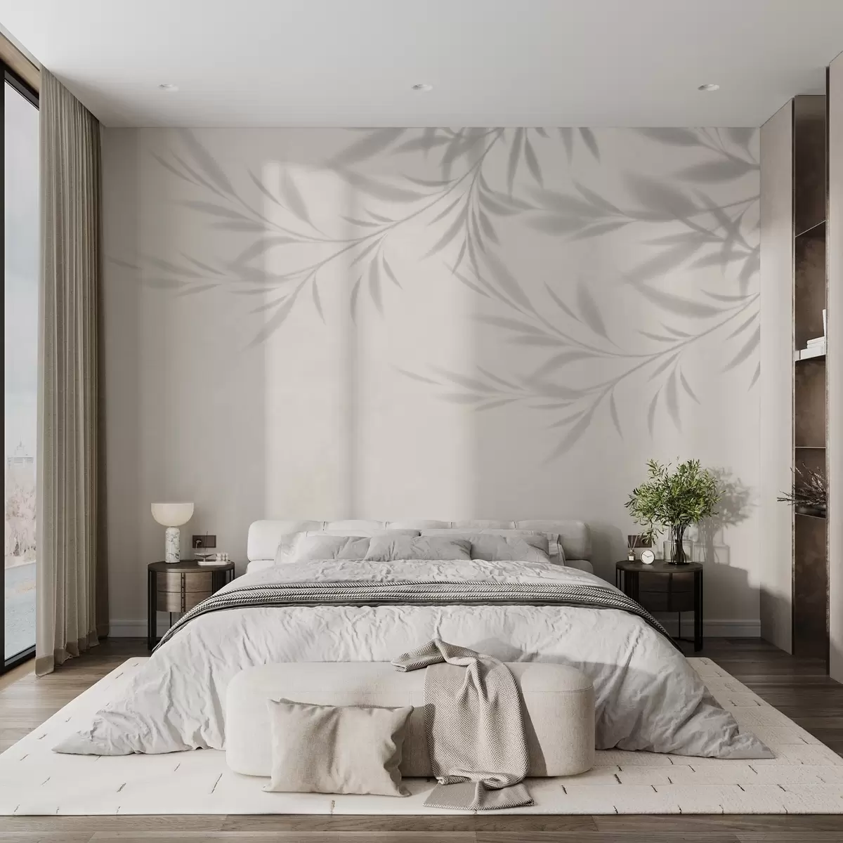 Carta da parati Ombra di rami e foglie su sfondo beige nr. w02283v1