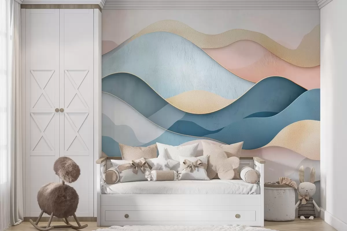 Carta da parati Motivo Art Deco ondulato nei colori rosa e blu nr. w02290