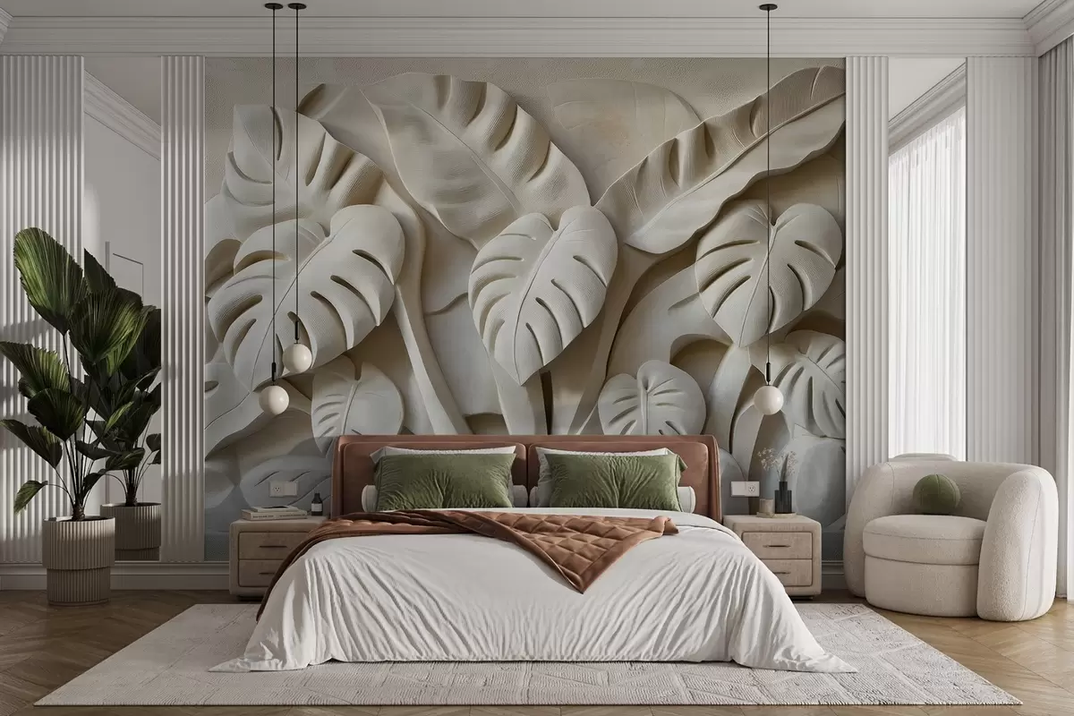 Carta da parati Bassorilievo di grandi foglie di monstera nr. w02312