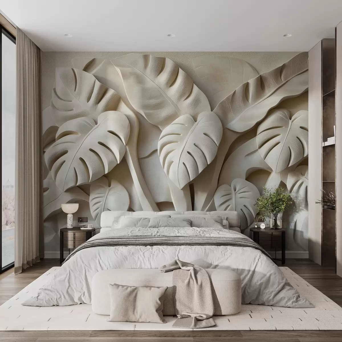 Carta da parati Bassorilievo di grandi foglie di monstera nr. w02312
