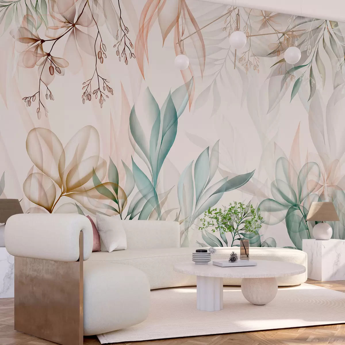 Carta da parati Delicato fogliame tropicale in colori pastello nr. w02316
