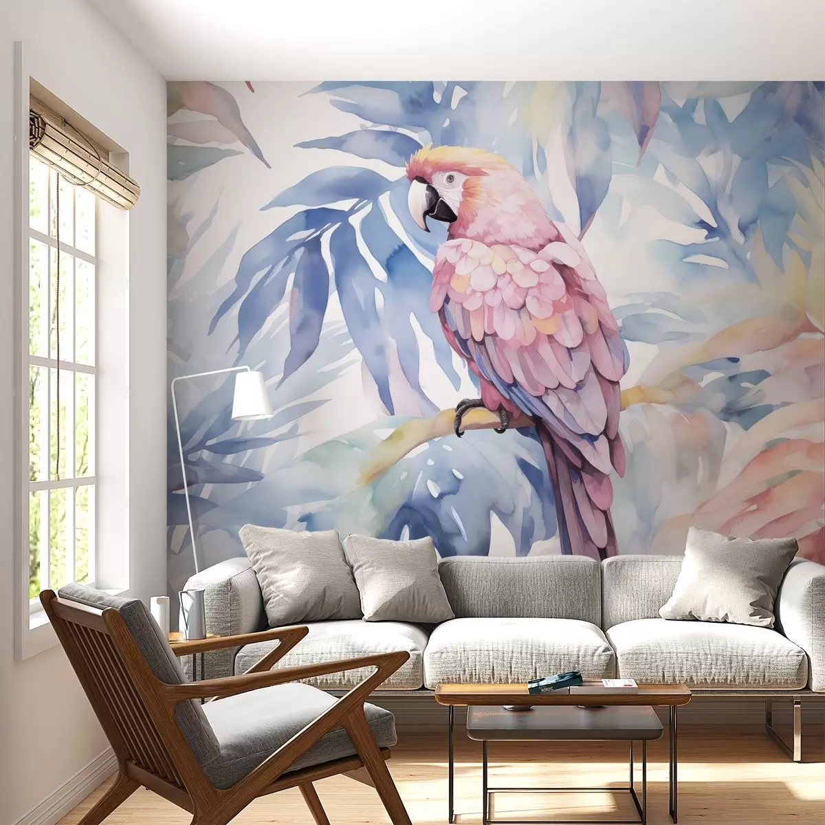 Carta da parati Pappagallo rosa seduto su un ramo imitazione di un dipinto nr. w02330