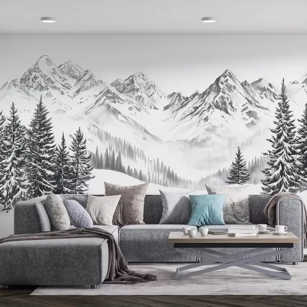 Carta da parati Montagne alpine nella neve, stile matita, minimalismo nr. w02352