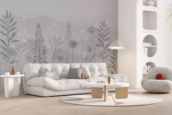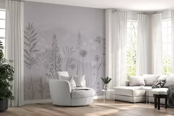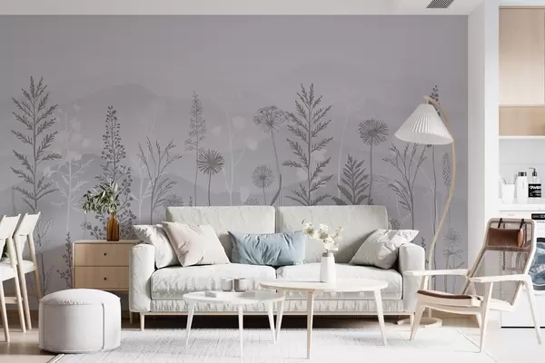 Carta da parati carta da parati in stile ecologico, fiori selvatici nei toni del grigio nr. w02443