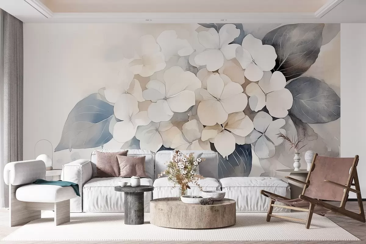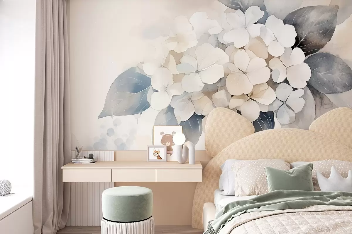 Carta da parati Fiore di ortensia, colori tenui, stile acquerello nr. w02491