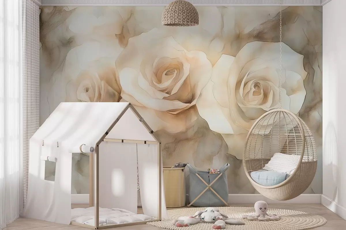 Carta da parati Bellissime rose, stile acquerello, colori beige, bohémien nr. w02492
