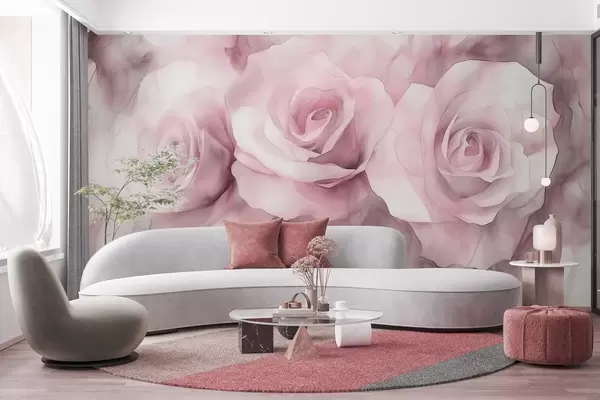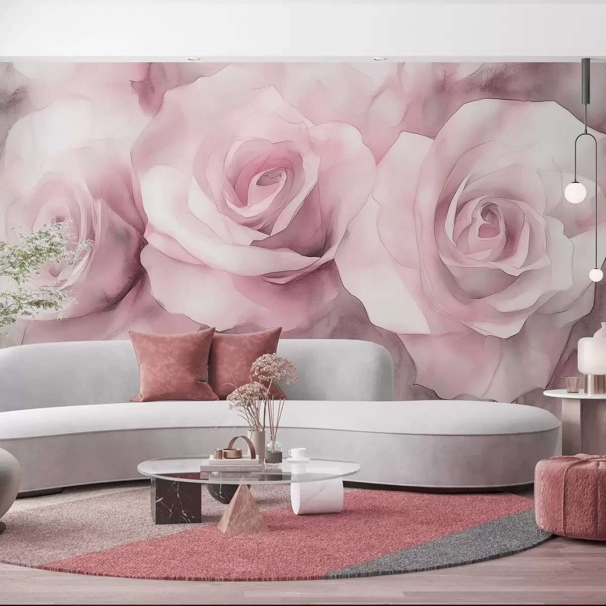 Carta da parati Belle rose, stile acquerello, colori rosa, bohémien nr. w02492v1