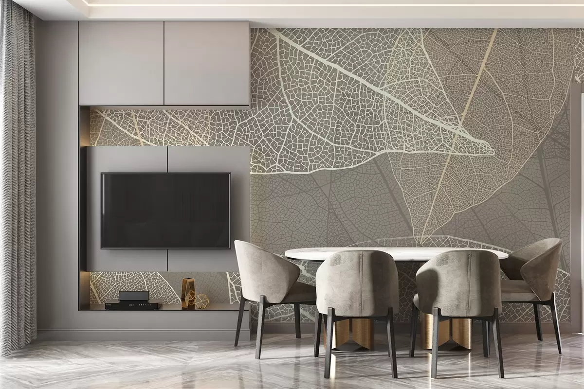 Carta da parati primo piano di foglie con venature nei toni caldi del grigio nr. w02520v2
