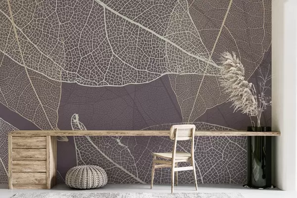 Carta da parati primo piano di foglie con venature nei toni del grigio-viola nr. w02520v3