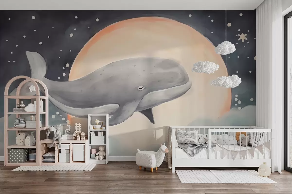 Carta da parati Balena sullo sfondo della luna nr. w02527