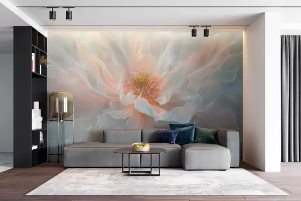Carta da parati un dipinto sognante ed etereo di un fiore grande e delicato in tenui toni pastello nr. w02545