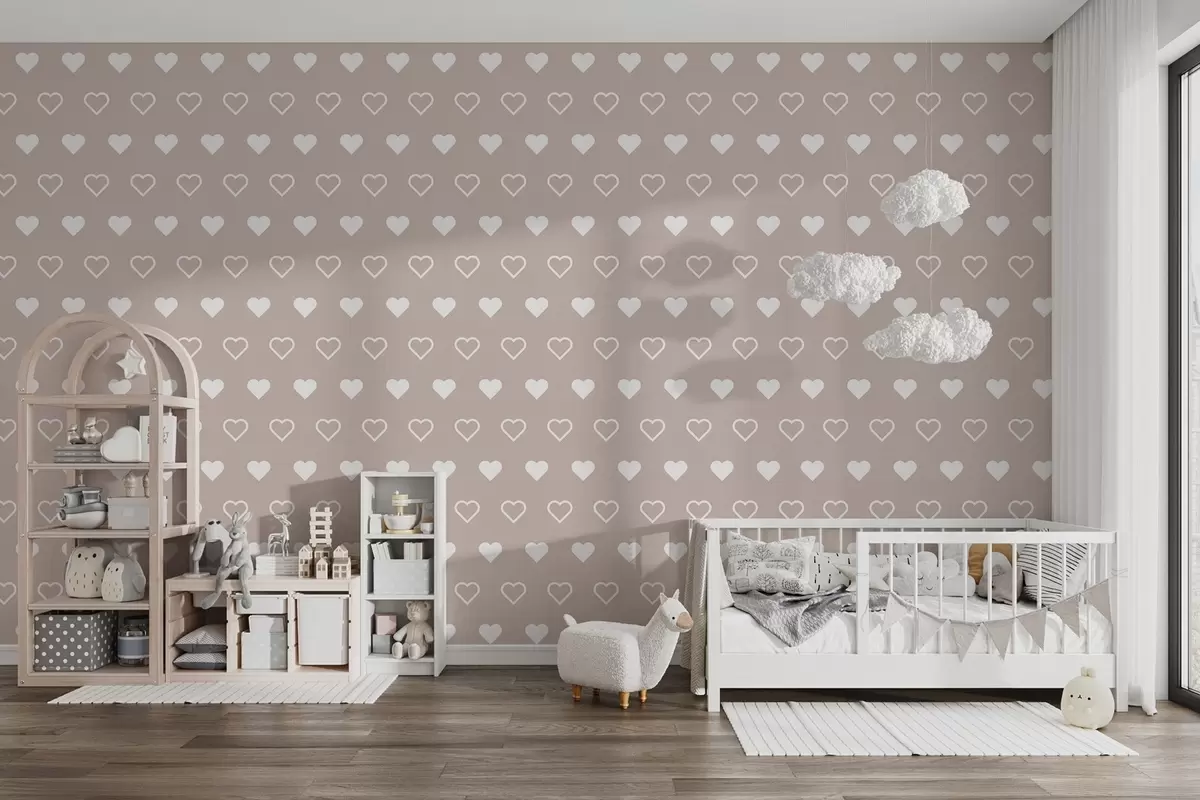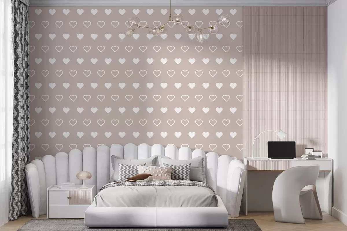 Carta da parati stampa minimalista di cuori su sfondo beige nr. w02548v1