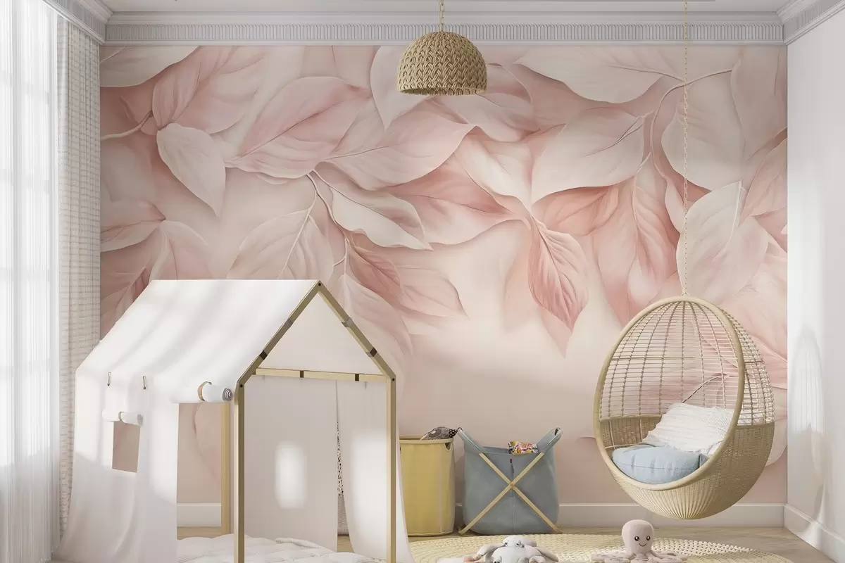Carta da parati delicate foglie rosa per la camera da letto della bambina nr. w02549