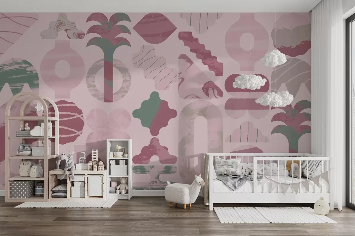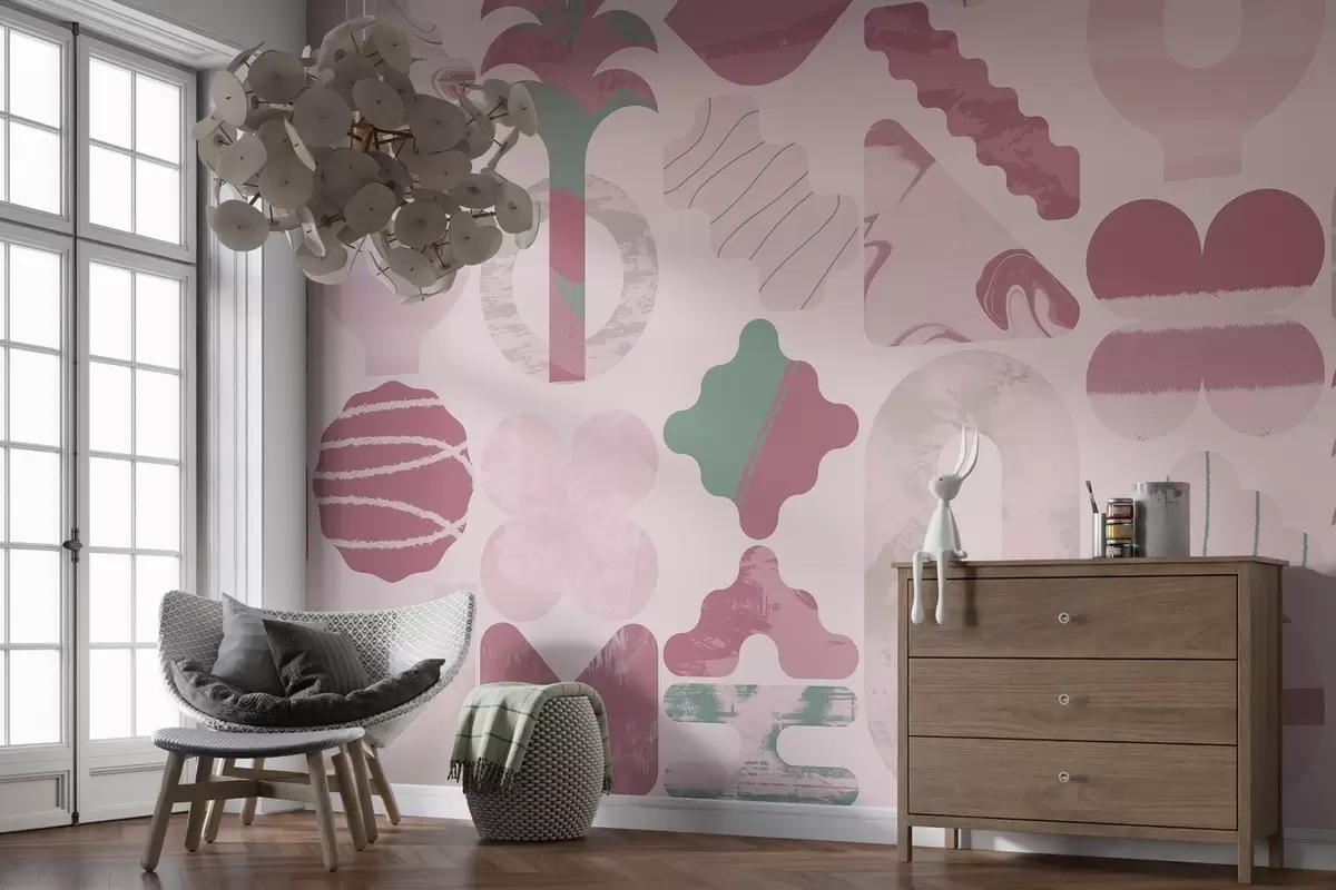 Carta da parati varie forme interessanti, geometria moderna in colori rosa nr. w02550