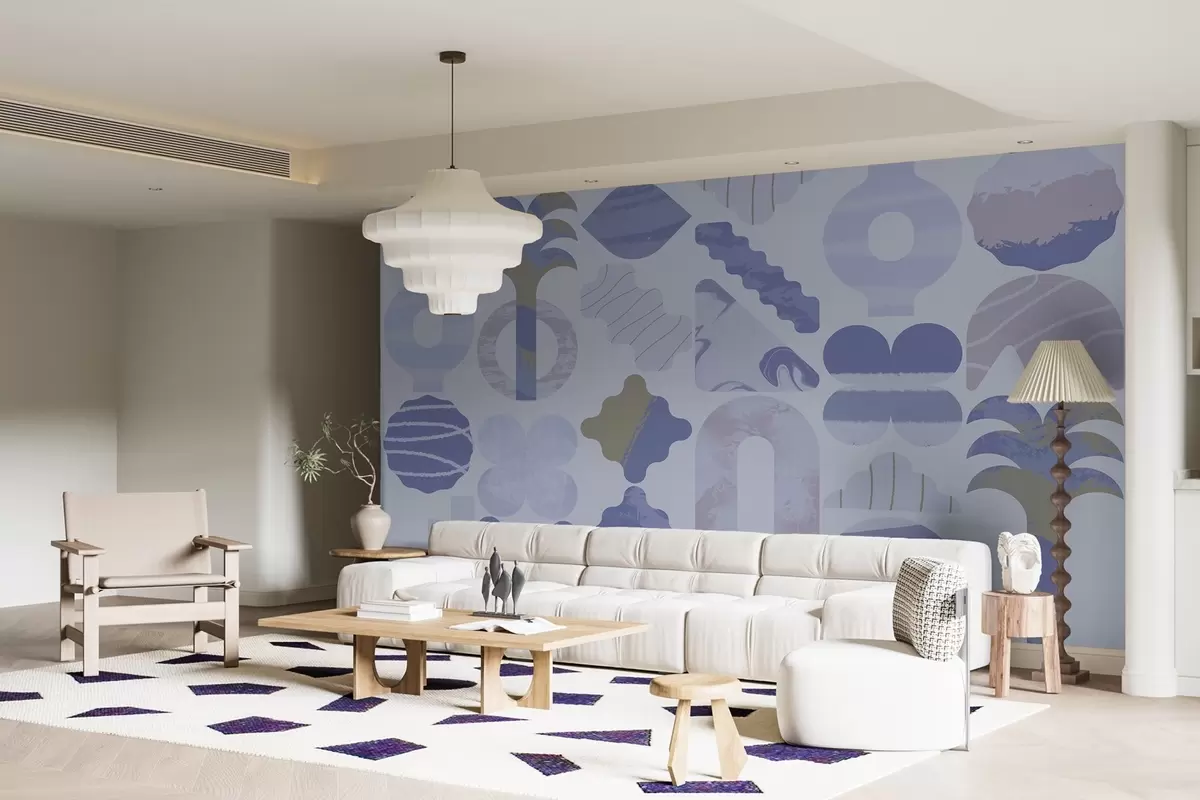 Carta da parati varie forme interessanti, geometria moderna in tonalità blu nr. w02550v1