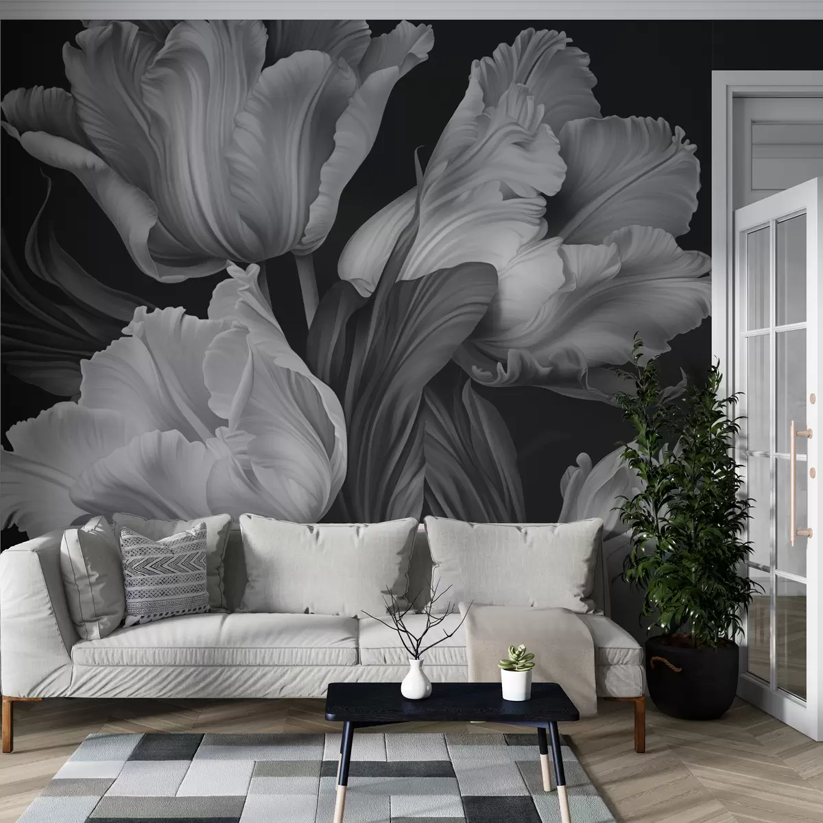 Carta da parati Tulipani in bianco e nero in stile fotorealistico nr. w02557