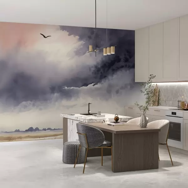 carta da parati Cielo tempestoso sul campo imitazione acquerello nr. w02581