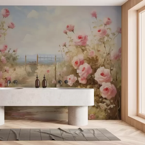 Carta da parati Giardino con rose imitazione di pennellate di pittura nr. w02590