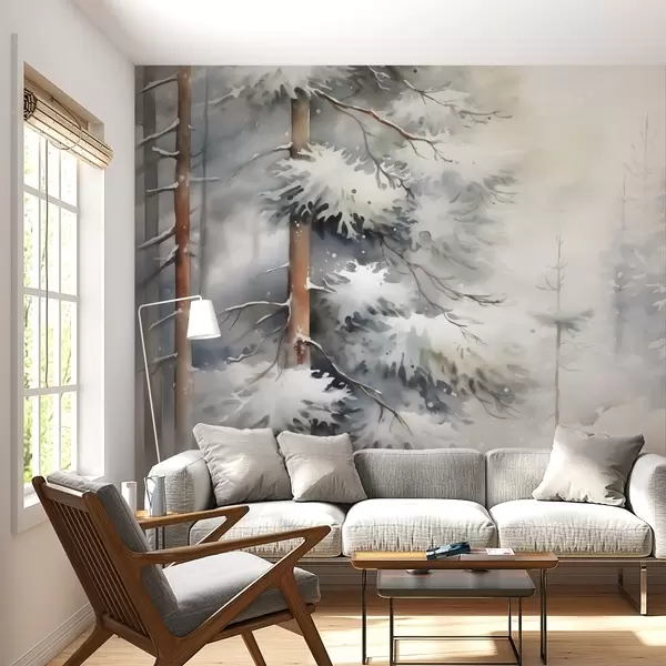 Carta da parati Foresta innevata imitazione dell'acquerello nr. w02591