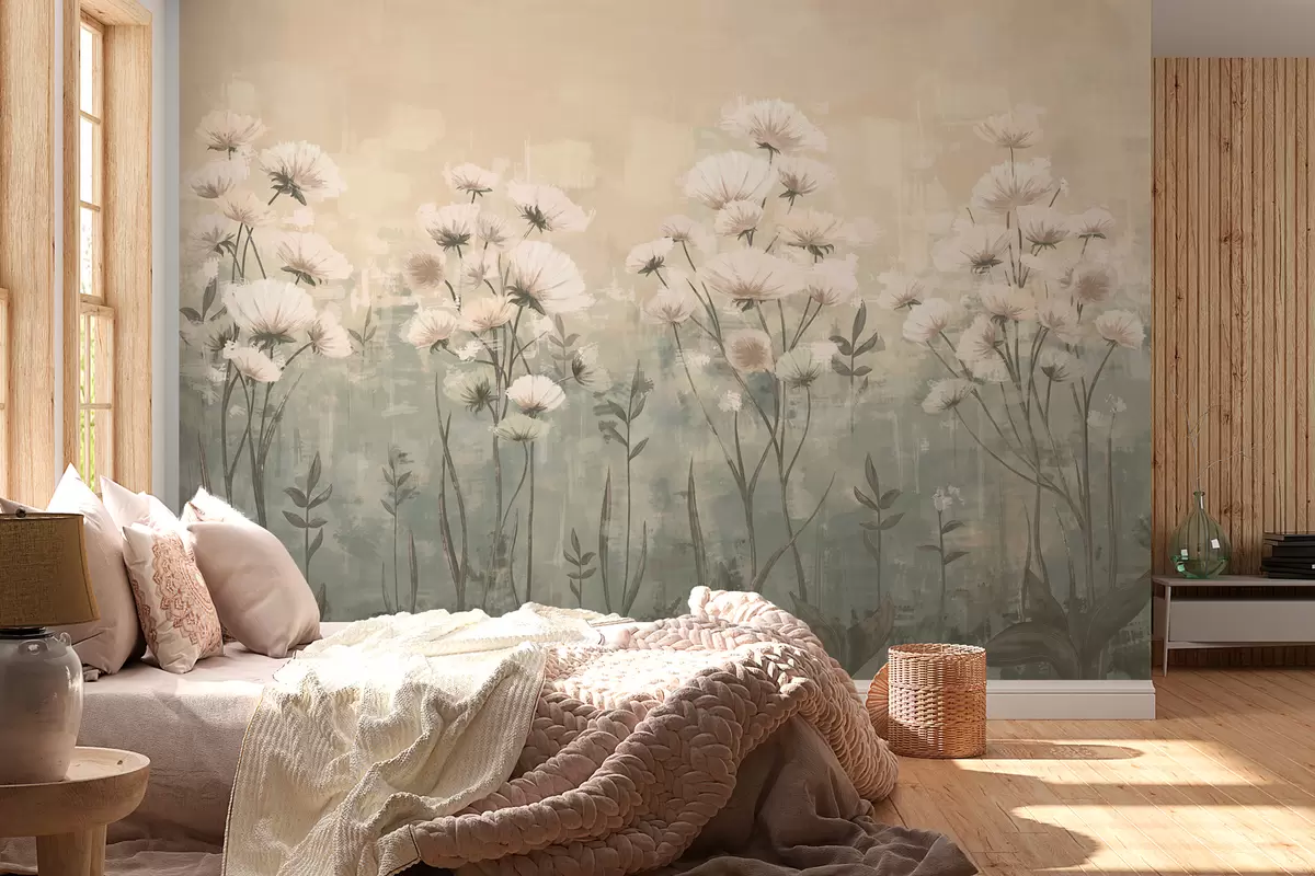 Carta da parati Delicati fiori di campo con effetto pennellata in giallo e beige nr. w02629v1