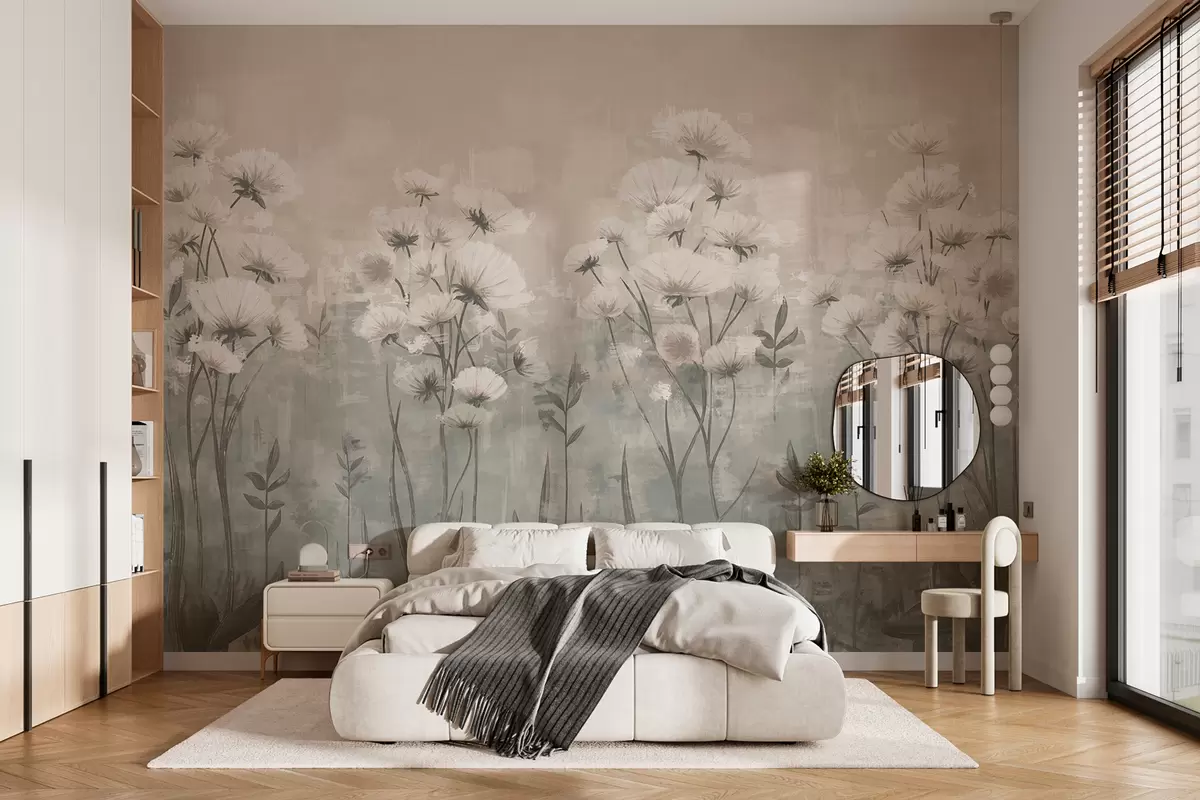 Carta da parati Delicati fiori di campo con effetto pennellata in colori pastello nr. w02629v2