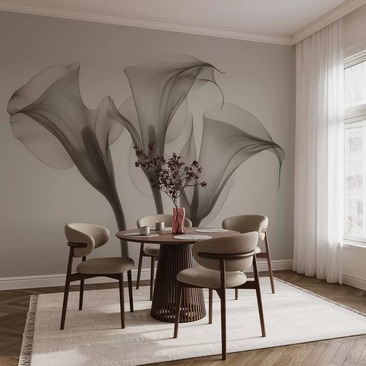 Carta da parati fiori di Zantedeschia trasparenti e ariosi nei toni del beige nr. w02632
