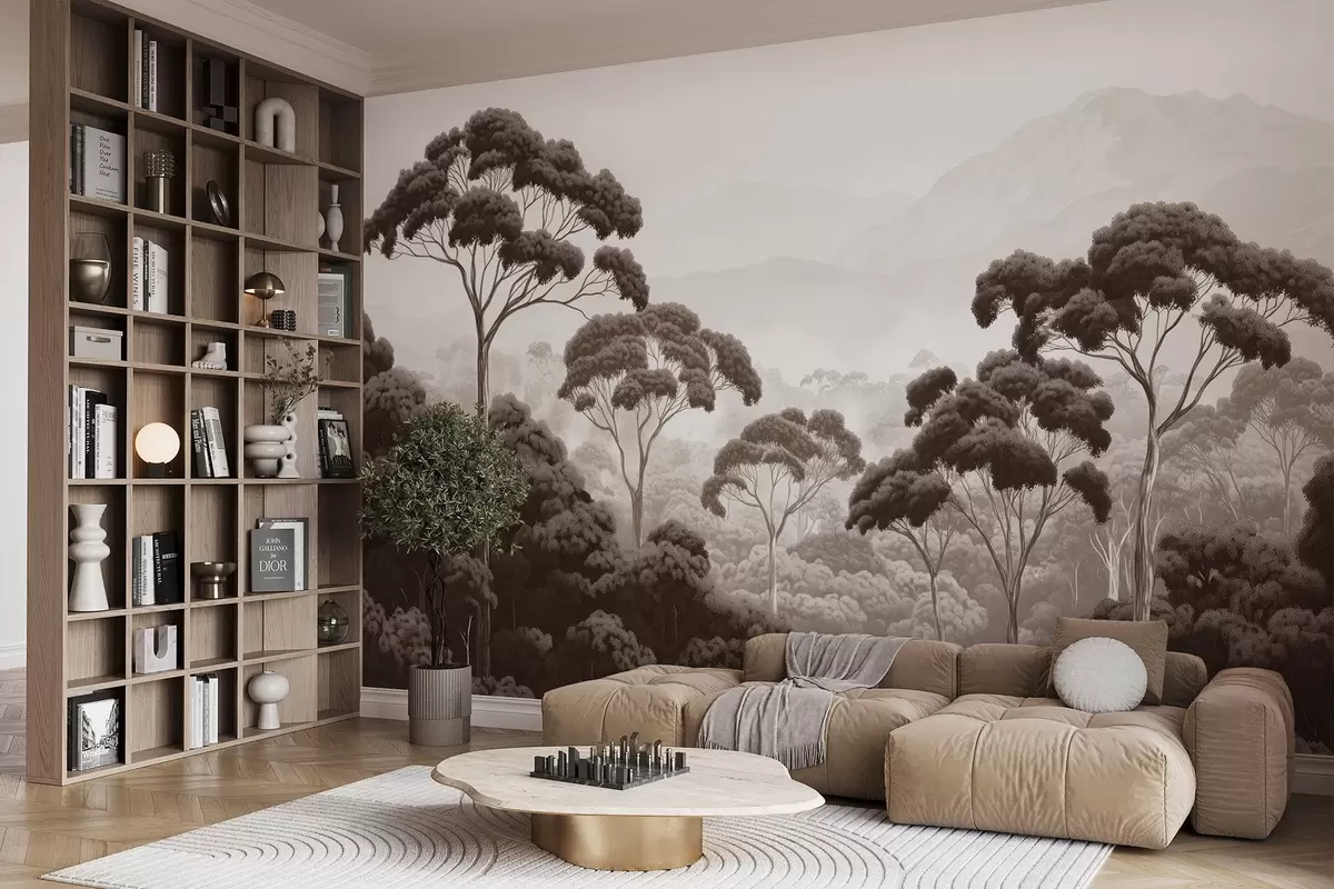 Carta da parati Foresta della giungla, montagne, tropicale, natura, grandi alberi, colori marroni nr. w02739v2