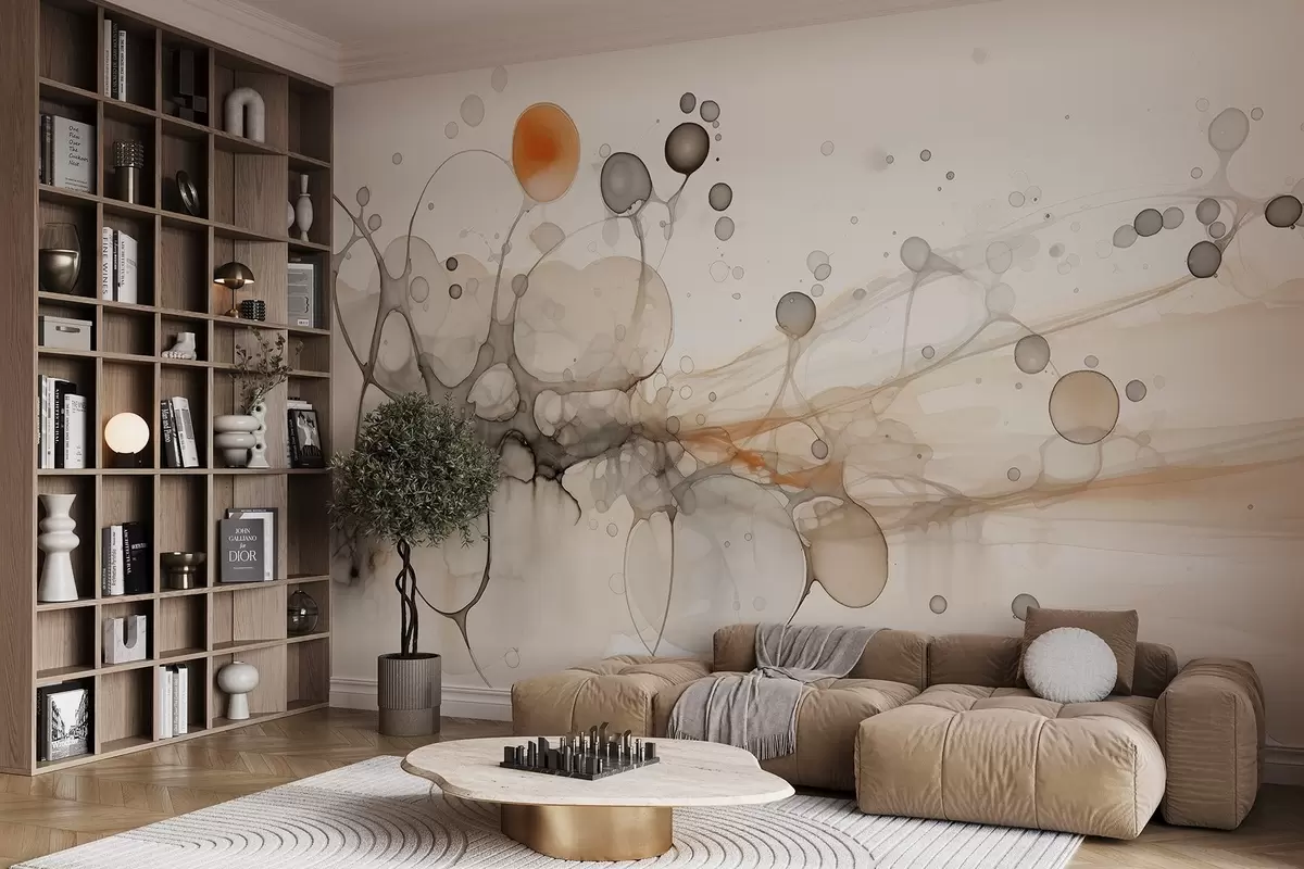 Carta da parati Astrazione, minimalismo, arte dell'inchiostro, colori fluidi, beige e grigio nr. w02750