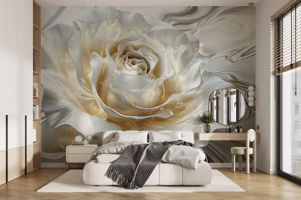 Carta da parati Rosa grande bianco perla in stile metallico nr. w02870