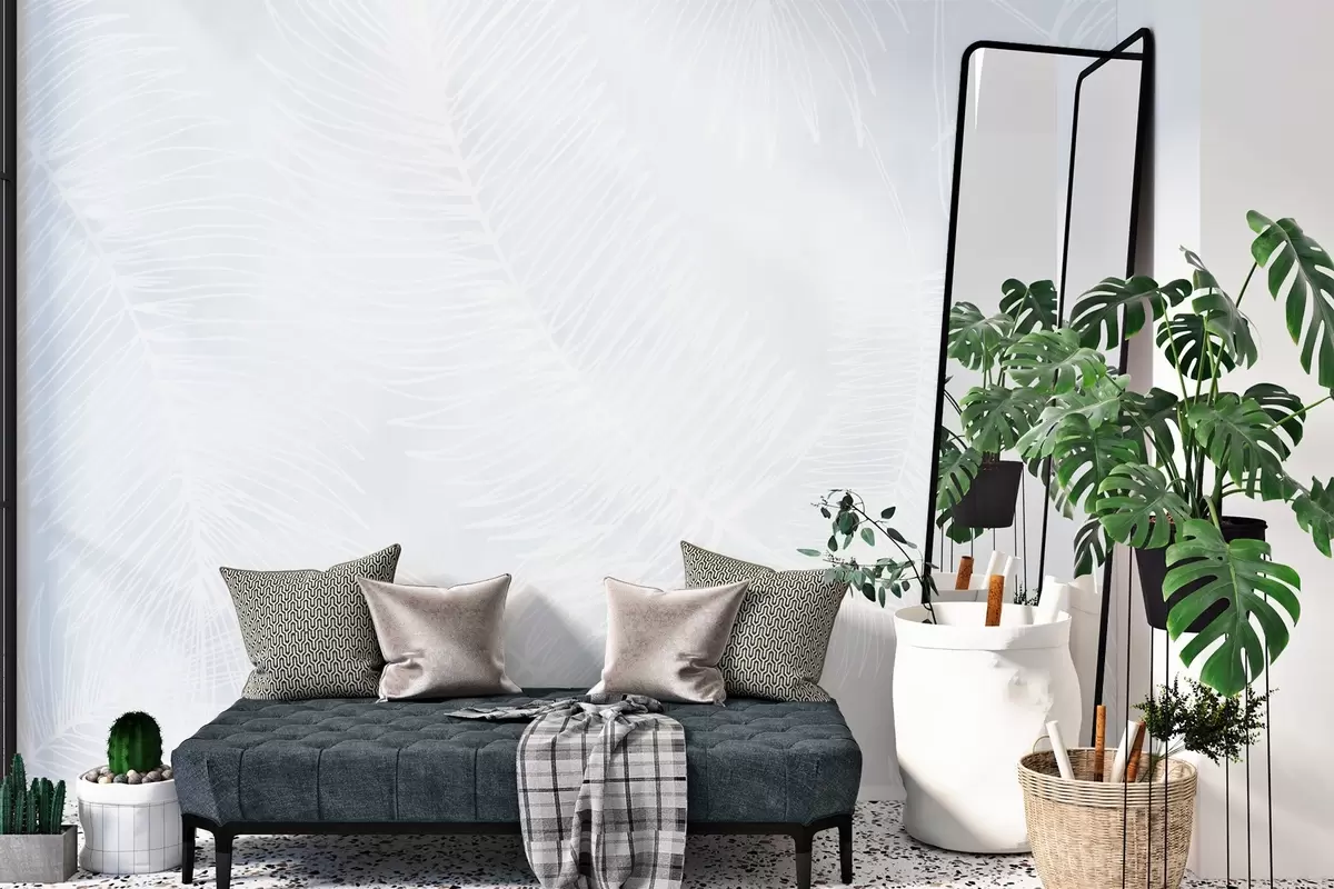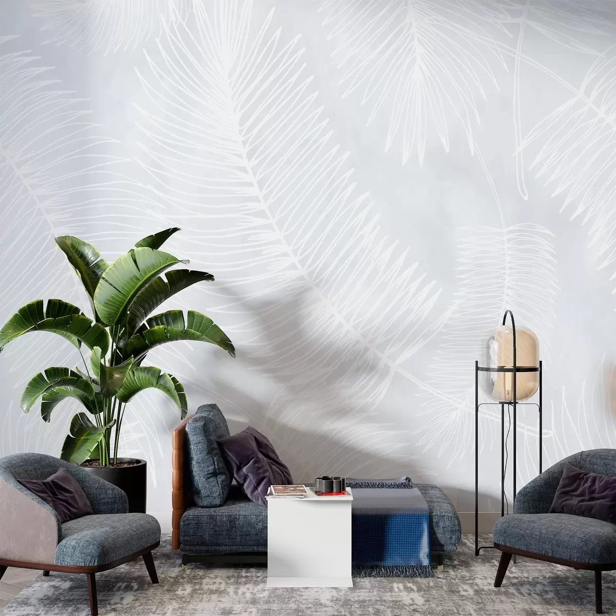 Carta da parati Sagome di foglie bianche su uno sfondo strutturato nr. w02894v1