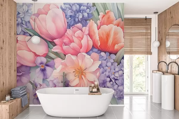 Carta da parati Bouquet floreale, tulipani, giacinto, colori viola, primavera nr. w02941