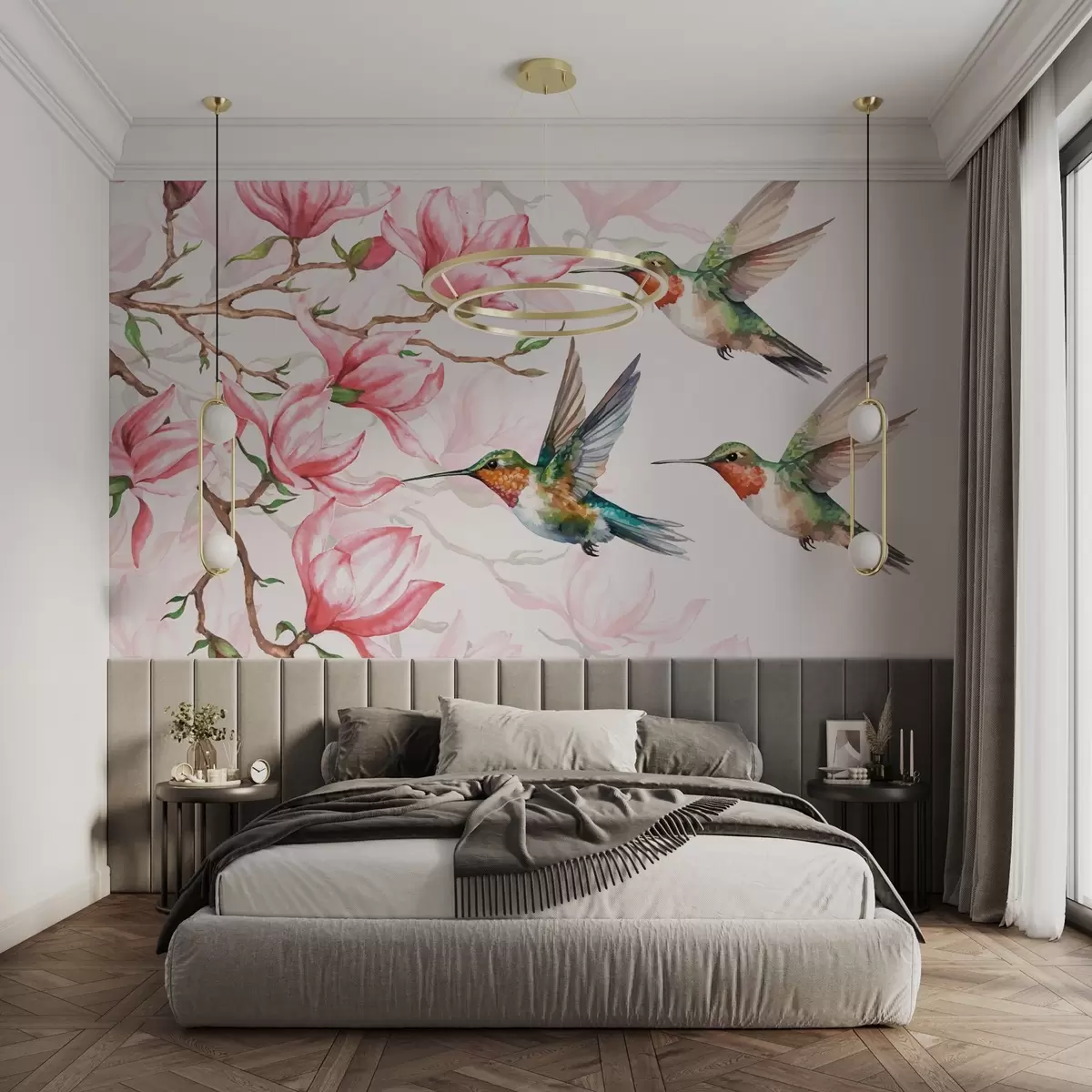 Carta da parati Magnolie in fiore e colibrì nr. w03104