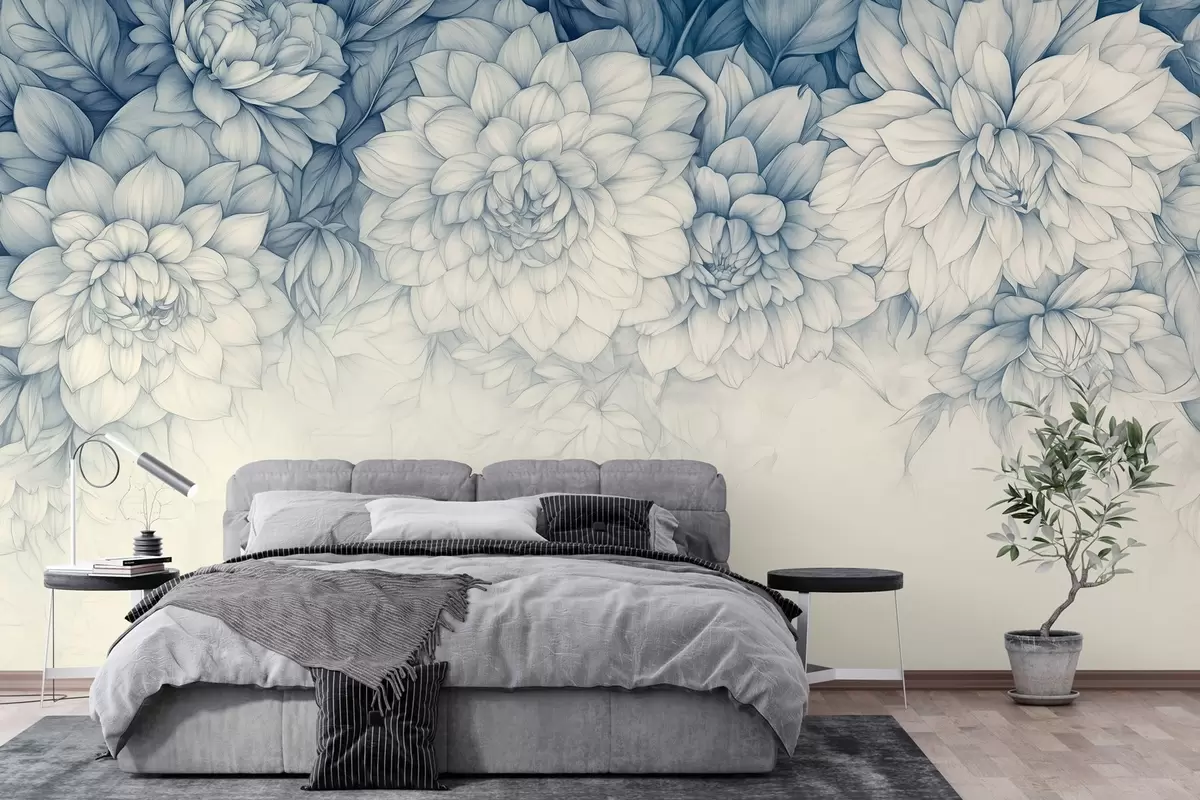 Carta da parati lussureggianti crisantemi monocromatici che pendono dall'alto nr. w03110