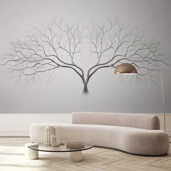 Carta da parati Raffigurazione minimalista di un albero con rami delicati su sfondo chiaro nr. w03159