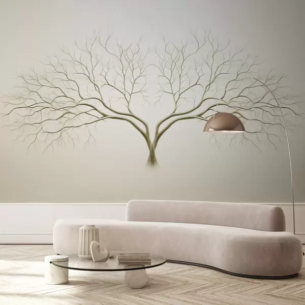 Carta da parati Immagine minimalista di un albero con rami delicati su sfondo beige chiaro nr. w03159v2