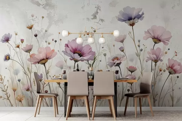 Carta da parati Fiori acquerellati in stile grunge nr. w03192