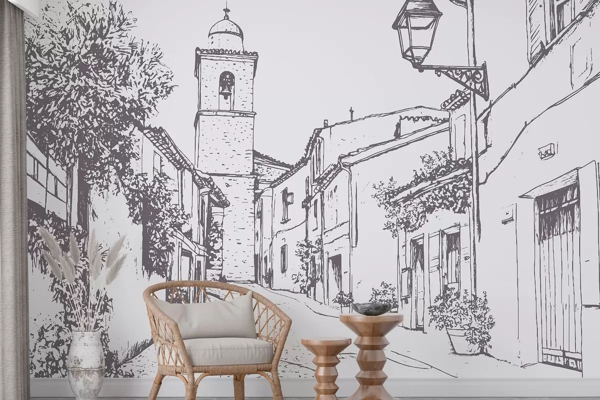 carta da parati Strada della città, bella architettura, edifici, Mediterraneo, disegno al tratto, colore beige nr. w03345v1