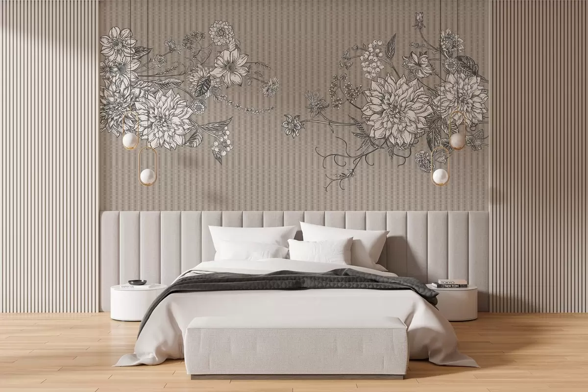 Carta da parati Fiori grafici su sfondo opaco nei toni del beige nr. w03395
