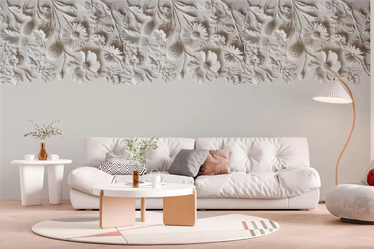 Carta da parati Imitazione di fiori in bassorilievo sulla parte superiore in color latte nr. w03398v1
