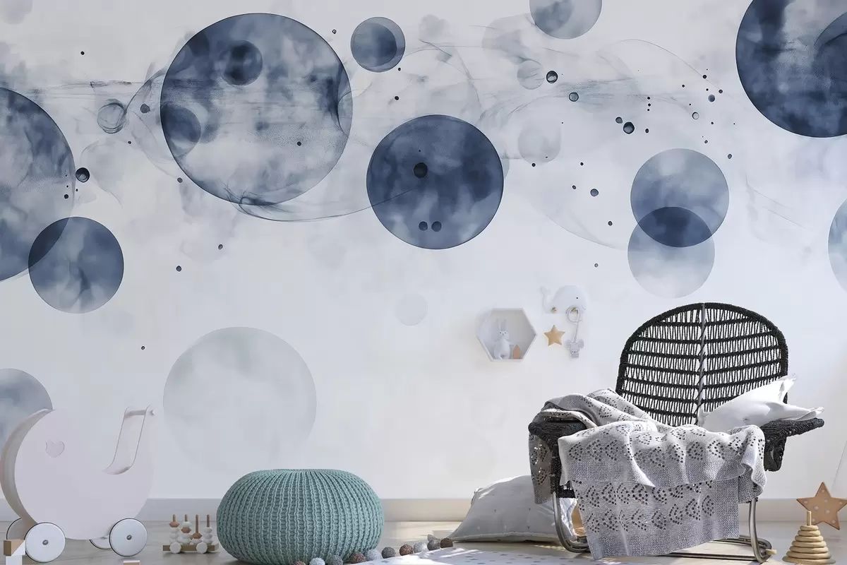 Carta da parati Cerchi in stile acquerello, astrazione, eterea, arte fluida, colori grigi nr. w03405