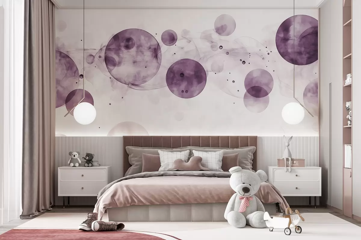 Carta da parati Cerchi in stile acquerello, astrazione, eterea, arte fluida, colori viola nr. w03405v2