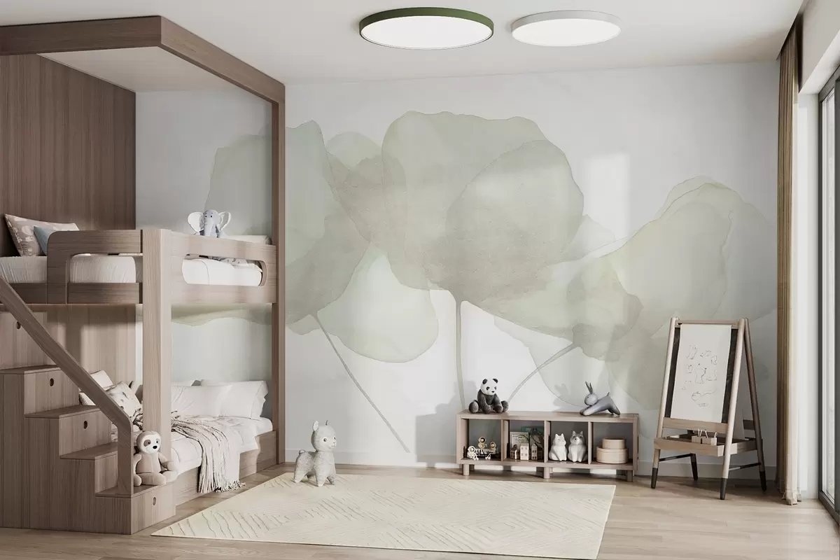 Carta da parati Bellissimi fiori, colori pastello tenui, minimalismo, naturale, rustico, beige e verde nr. w03407