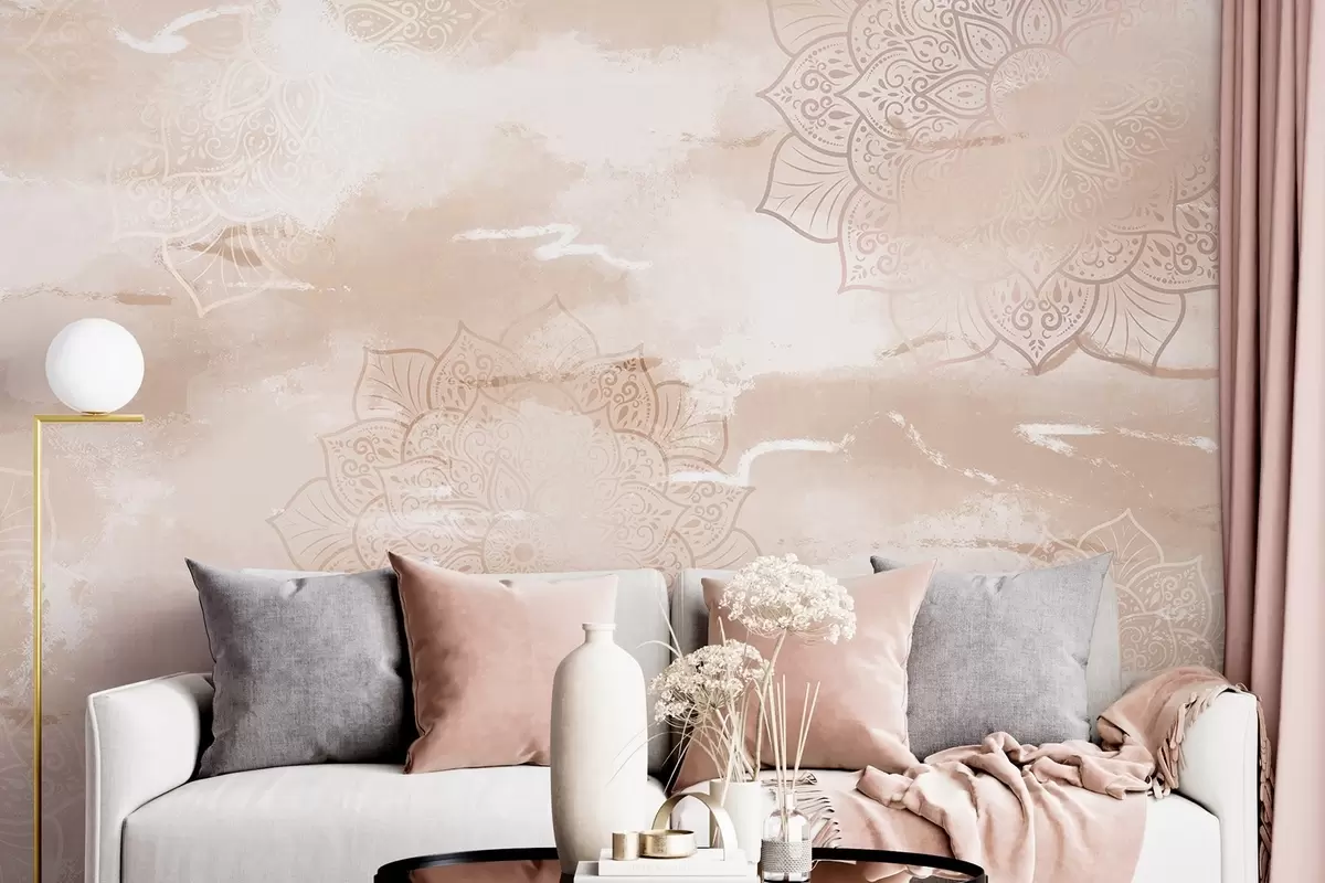 Carta da parati Mandala su sfondo pastello, pennellate vivaci, colori beige nr. w03409