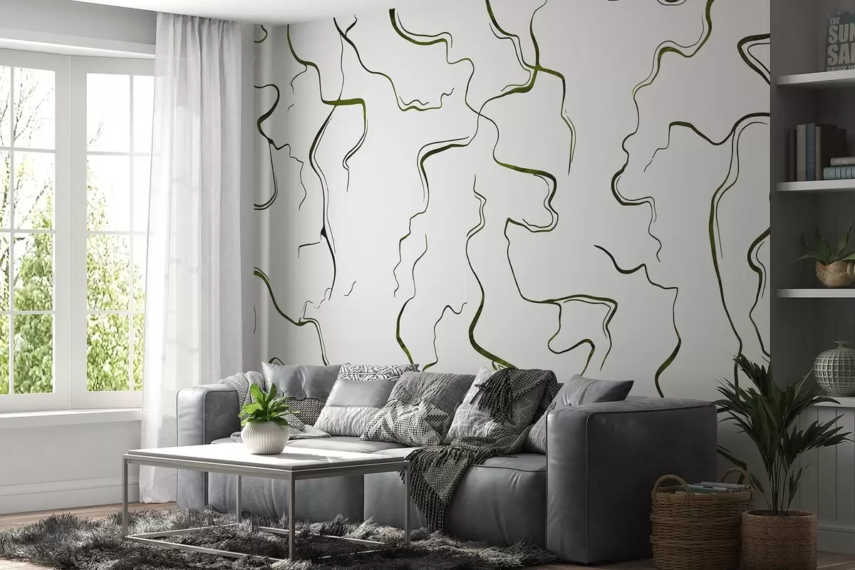 Carta da parati Linee geometriche, stile inchiostro, astrazione, colori verdi nr. w03436